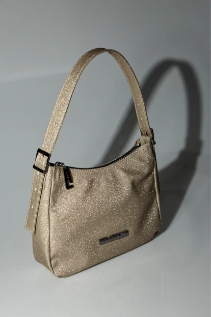 • Strap with metal details in nickel finish