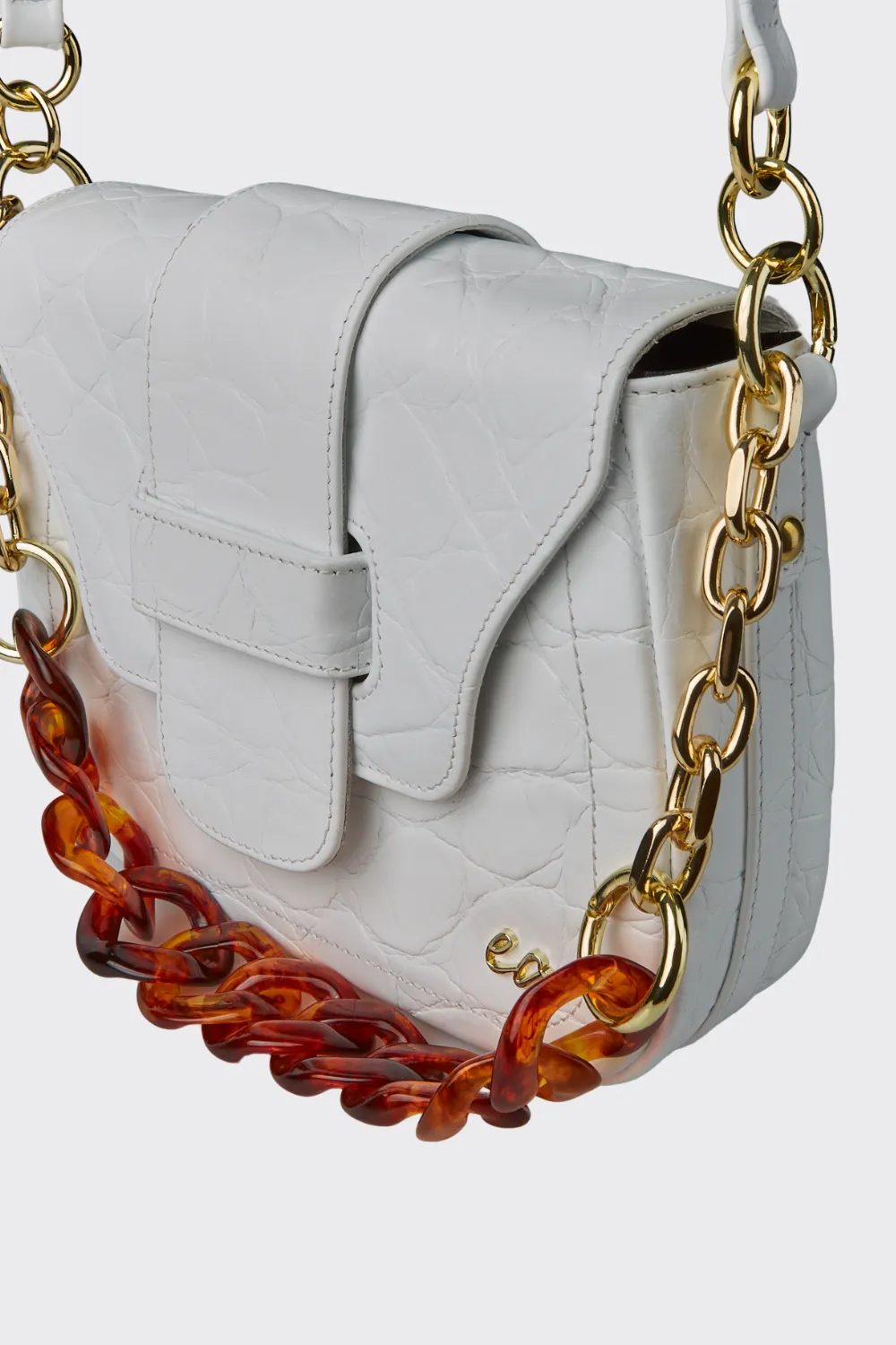 • Removable shoulder chain with metal and tortoiseshell accents