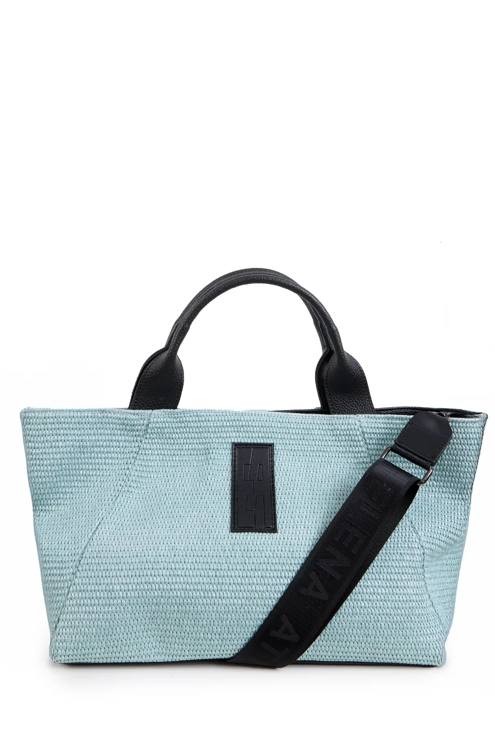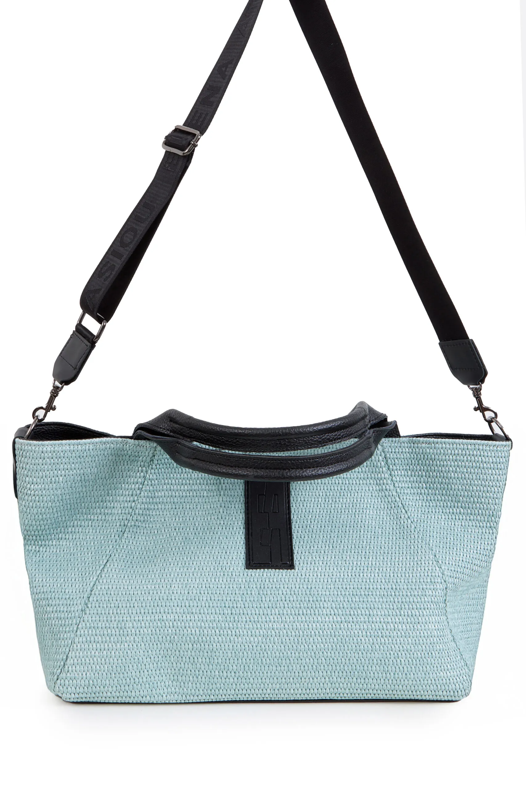 • Hand strap and crossbody strap with nickel metal details