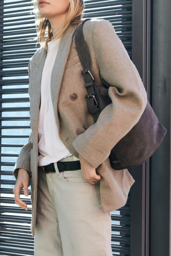 Bling Pouch Cacao. Κατασκευασμένο απο 100% γνήσιο δέρμα καστόρ, με επένδυση φόδρας, τσέπες στο εσωτερικό της. Διαθέτει μεταλλικές λεπτομέρειες σε μαύρο νίκελ και μαύρη νίκελ επιγραφή του σχεδιαστή. Το λουράκι της τσάντας διαθέτει δυνατότητα αυξομείωσης με τόκα μεταλλική.