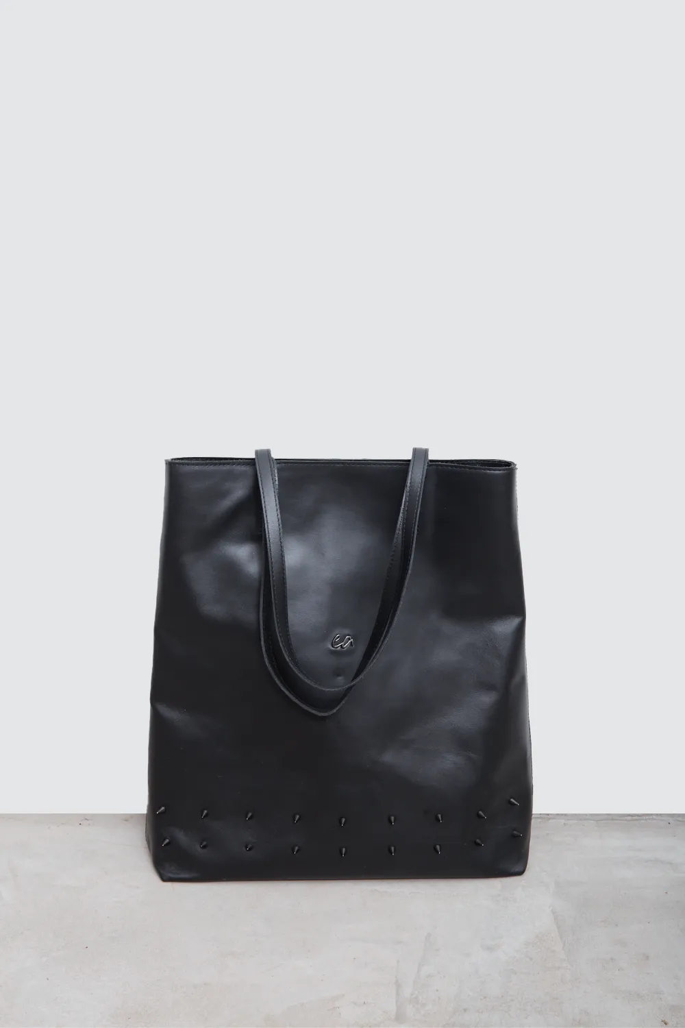 • Designer’s initials in black nickel on the front