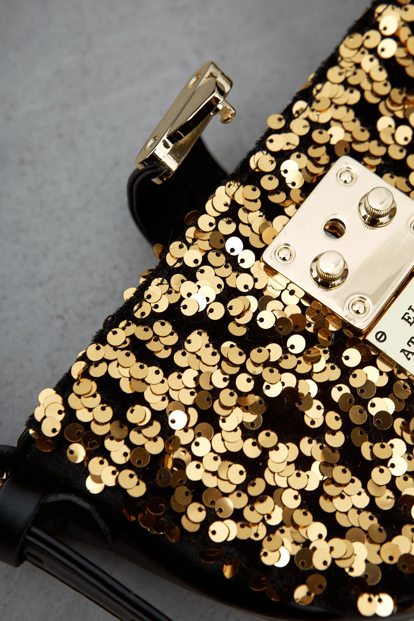 • Embroidered sequins and 100% genuine leather